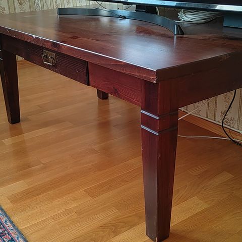 Myydään erittäin hyväkuntoinen olohuoneen pöytä. Täyttä puuta. Leveys 107 cm, syvyys 70 cm ja korkeus 51 cm.