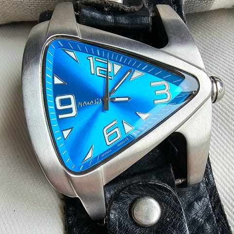 Kellossa on vaalea kellotaulu, jossa on kolme pienempää apunäyttöä sekä päivämääräikkuna. Rungon ja rannekkeen väri on kullan sävyinen. Kellossa on perinteinen linkkiranneke taittosoljella. Sopii miehille arki- ja juhlakäyttöön.