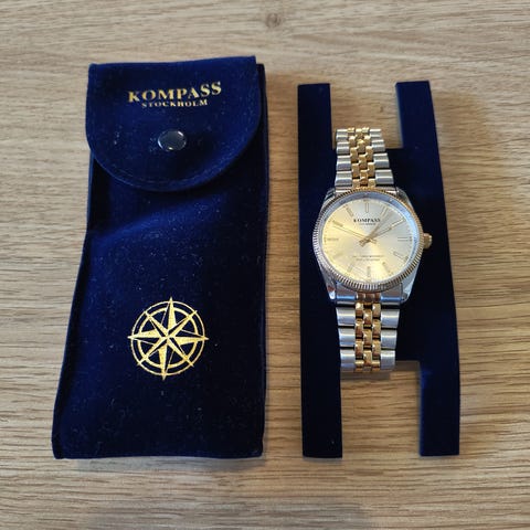 Kompass Stockholm miesten rannekello kullanvärisellä metallirannekkeella.