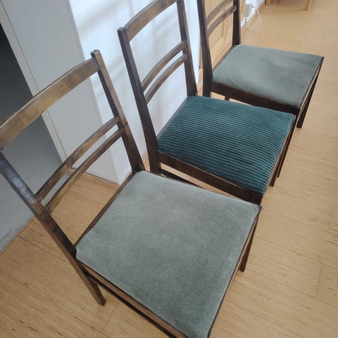 Tästä tuoleja vaikka toimistoon tai ruokapöytään. Lasken vielä ja tarkistan monta näitä tuoleja on mutta arviolta 10kpl. Kaikki pois samalla kertaa.