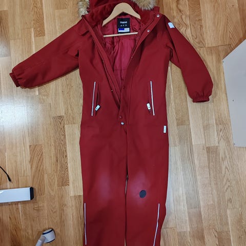 Tummansininen Reima (tec) Stavanger -talvihaalari. Kuviin yritetty vangita kulumat. Aivan pienen reiän huomasin n. polven tasolla sisäsauman vieressä takana. Muutoin ehjä!
