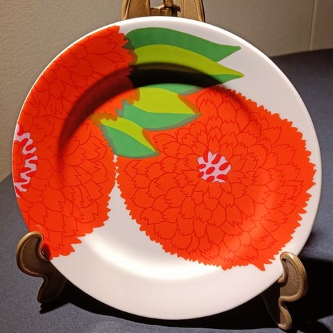Myydään vähäisellä käytöllä ollut Marimekon "Primavera"-lautanen.