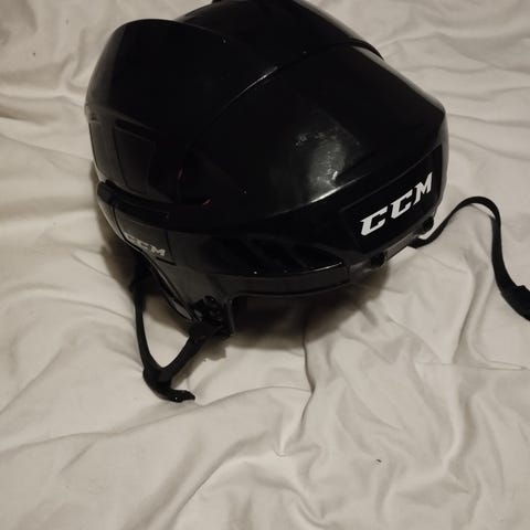 Hyvin maltillisella käytöllä ollut musta CCM FL40 -jääkiekkokypärä kasvosuojuksella (koko M). Ehjä ja siisti, valmiina käyttöön.