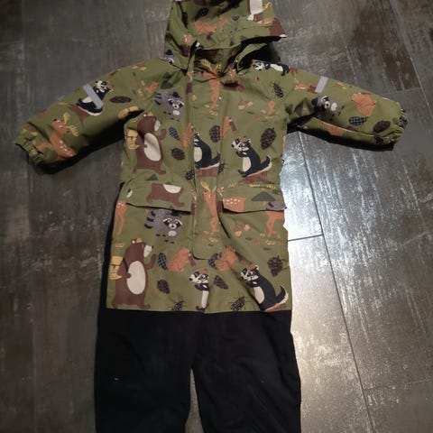 Ihana Minymon puna-liilaraitainen toppahaalari kokoa 98. Erittäin hyväkuntoinen. Päällinen hyvin vettä hylkivää polyamidia, sisältä polyesteriä (fleece hupussa, ylävartalossa ja pepussa). Irrotettava huppu, hihansuissa tarranauhat, jalkalenkit ei mukana mutta napit paikallaan.