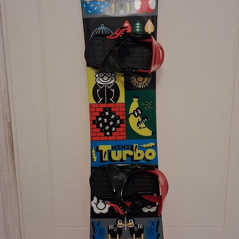 K2 Mini Turbo lumilautasetti, johon kuuluu lumilauta, siteet ja kengät. Kengät ovat mallia K2 Kat boa-kiinityksellä, koko 35,5. Hyvä käytetty kunto. Laudan reunoissa on näkyvissä pientä kulumaa, joka ei menoa haittaa.