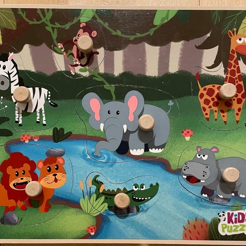 ---"Lelu"aihe palapeli, 6 värikästä palaa, isot nupit h.4e.
