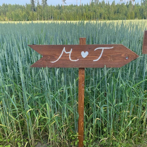 Puinen tervetuloa-kyltti (häistä - myynnissä myös muuta häätavaraa)