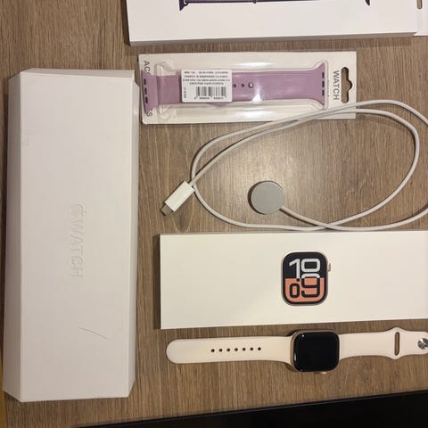 Myydään erinomaisessa kunnossa oleva Apple Watch Series 10 46mm GPS silver alumiinisella kellotaululla. Mukaan tuleva ranneke on sininen urheiluranneke. Laitteessa on vain vähäisiä kosmeettisia jälkiä ja toiminnaltaan moitteeton. Kauppaan sisältyy ranneke sekä laturi.