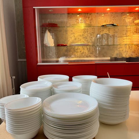 Käyttämätön lautassetti, sisältää seuraavat osat: