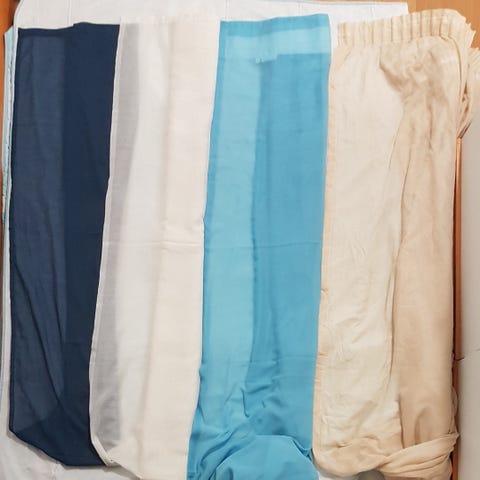Myydään kuvan puolinäkyvä verho poimutusnauhalla. Mitat: leveys 360 cm, korkeus 250cm. Verhon alareunassa painonauha/ lyijynauha Nouto