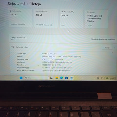 8 GB RAM, 256 GB SSD-muisti