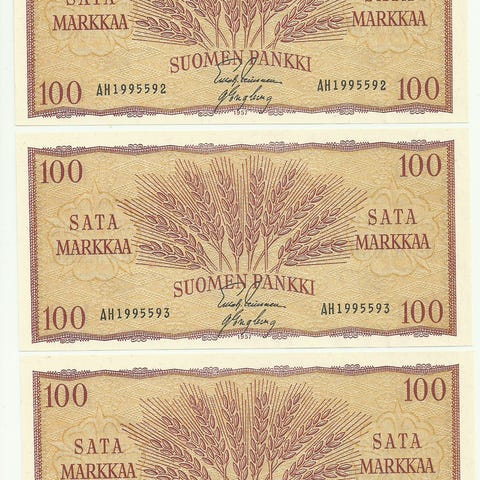 Suomen Pankki 100 markkaa seteli 1945 Liit.B No AO-2620946