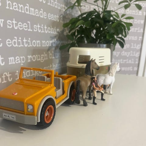 Schleich hevostalli-leikkisetti auto ja traileri