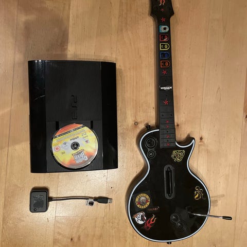 2 kpl playstation 3 konsolia + pelit + guitar hero kitara .