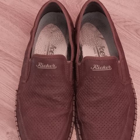 Rieker loaferit, koko 41. Ruskeat nahkakengät, joissa tummansinisiä yksityiskohtia ja vaalea kumipohja. Sopivat arki- ja vapaa-ajan käyttöön. Uudenveroiset.