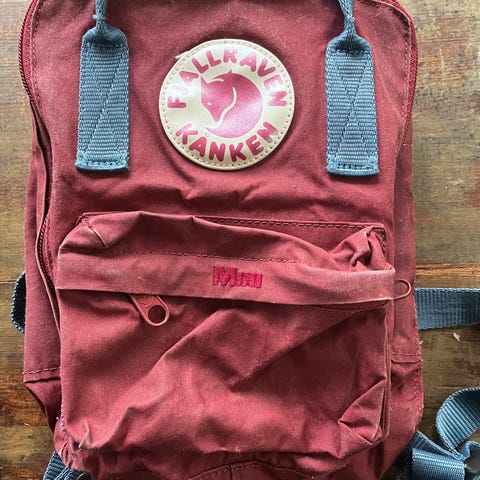 Fjällräven Kånken reppu. Paljon ollut käytössä, joten käytönjälki näkyy, ehjä kuitenkin on