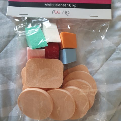 Meikkisieniä, kolmion muotoisia. Paketissa 8 kpl.