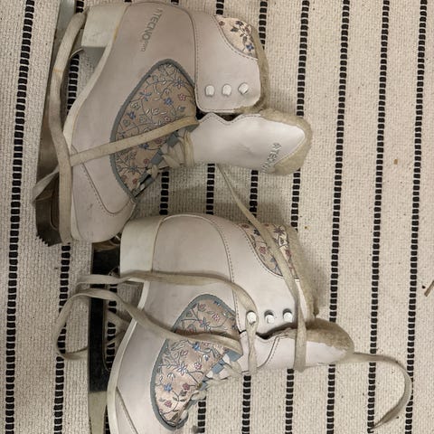 Toronto lasten luistimet, koko 35. Väri musta-valkoinen. Soveltuvat yleiseen luisteluun. Nauhakiinnitys ja perinteinen terärakenne.