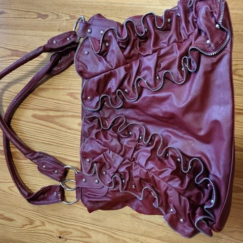 Hieno kimaltelevan kankaan ja kiiltonahan yhdistelmä.