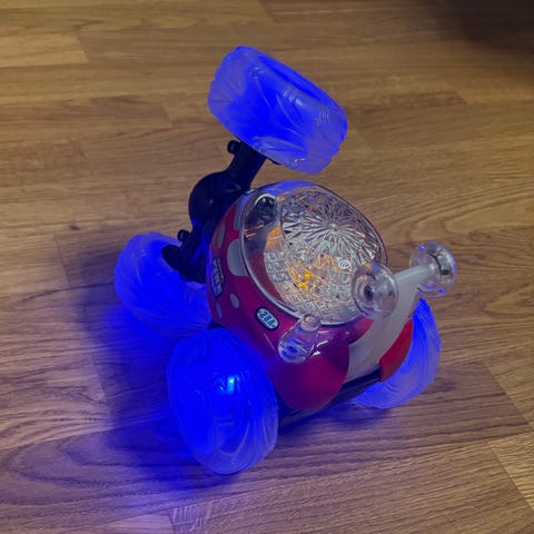 Valitettavasti radio-ohjain puuttuu, niin ei tiedä toiminnasta. Tähän menee 3 AA-paristoa.