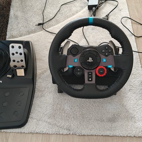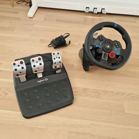 Logitech G29 ajosimulaattorin rattiohjain polkimilla ja vaihdekepillä