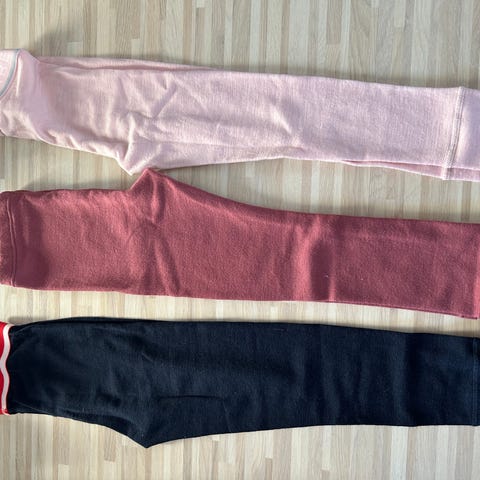 Vastaavat kokoa 98/104, muutama reikä korjattu ompelemalla, muuten hyvät.