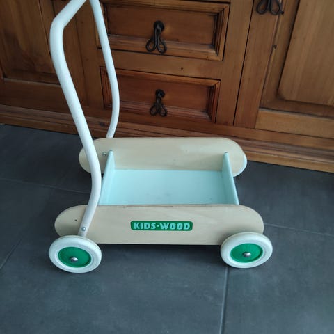 Pienelle kävelemään opetteluun. Käytönjälkeä löytyy. Kuomu tapetoitu ja kupruilee hieman. Kaikki huomiota hinnassa.