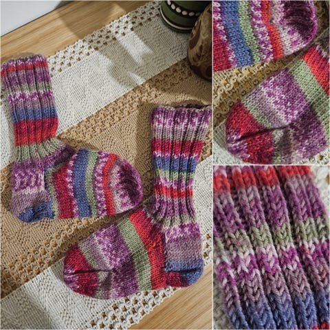 Lasten käyttämättömät kotikutoiset villasukat joiden koko näkyy kuvissa