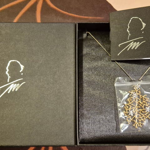 Kultakeskuksen valmistama Tähtitaivas-riipus on Tapio Wirkkalan suunnittelema koru, joka on valmistettu kullan- ja hopeansävyisestä metallista. Sen moniulotteinen ja verkkomainen rakenne yhdistää geometrisia muotoja ja pieniä tähtikoristeita. Riipuksen yläosassa on kiinteä lenkki kaulaketjua varten.Valmistaja: KultakeskusKorkeus on noin 5,5 cmVäri: kulta, hopeaMateriaali: 925 hopea