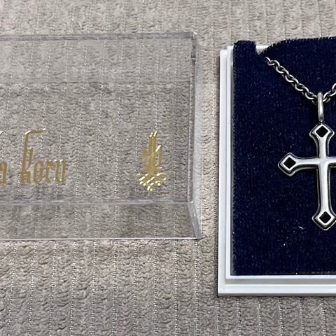 Kalevala Korun Illusioni-riipus on hopeasta valmistettu tyylitelty risti, jonka muotoilussa on käytetty neljää vinoneliön muotoista aukkoa. Nämä aukot antavat korulle kevyen ja modernin ilmeen. Riipus on kiinnitetty siroon ketjuun.Valmistaja: Kalevala KoruRiipuksen Mitat (LxK) ovat noin 2 x 2,5 cmKetjun pituus on noin 41,5/44 cmVäri: hopeaMateriaali: 925 hopea