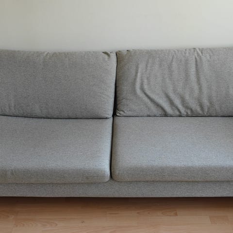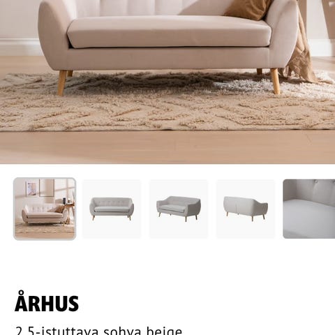Pari vuotta vanha sohva. Sohva sijaitsee Hyvinkäällä ja vain nouto Ikean sohva. Syvyys 77 cm,vapaa korkeus kaluston alla 20 cm, korkeus 80 cm, istuimen syvyys 50 cm,istuinkorkeus 47 cm,Leveys 142 cm.