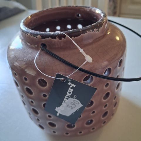 Rusta lyhty, jossa lasiset seinät ja valkoinen, kulutetun näköinen runko. Lyhty sopii sisäkäyttöön koristeeksi eri vuodenaikoina. Sisällä on valosarja, jossa useita pyöreitä, vaaleita koristevaloja. Lyhtyä voi käyttää esimerkiksi tunnelmavalona olohuoneessa, eteisessä tai muussa sisätilassa. Sähköjohto tulee lyhdyn sisältä, ja lyhty asetetaan lattialle tai tasolle. Ulkomitat ja tarkka materiaali eivät käy ilmi, mutta runko on maalattua materiaalia ja sivut ovat lasia . Nouto kilpiäinen maksu käteinen