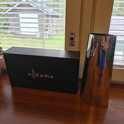 teräksinen hedelmävati puisilla kahvoilla