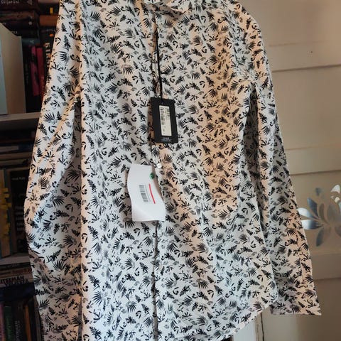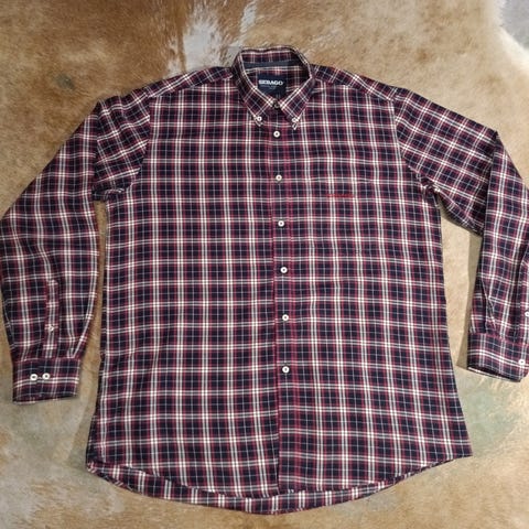 Käyttämätön miesten XL (43-44) kokoa oleva kauluspaita. Pohjaväri sininen jossa valkoisella värillä poikki-ja pystyviivoja. Laadukas materiaali.