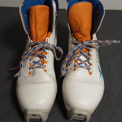 Jalas hiihtomot kuvan mukaisella kiinnotyksellä. Pohjallisen sisämitta 25 cm. Monossa merkintä: koko 6. Siistit ja tulevat monot
