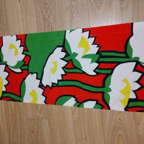 Marjatta Metsovaaran Suunnittelemasta kankaasta tehty verhokappa. 54x159 cm. KATSO KAIKKI MUUTKIN ILMOITUKSENI