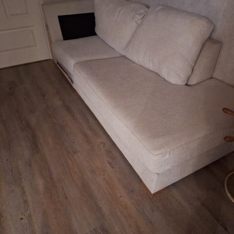 Ruskea iso ja painava sohva tyrkyllä uuden tieltä!