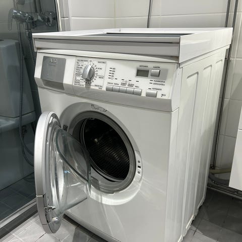 Myydään siisti AEG pyykinpesukone! Päältä täytettävä ja mahtuu pieneen tilaan. Mitat: syvyys 60 cm, leveys 40 cm ja korkeus 84 cm.