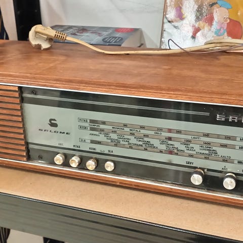 Erittäin hyvässä kunnossa oleva putkiradio muhkeilla saundeilla. Radion koko on 55 x 25 cm, korkeus 35 cm.