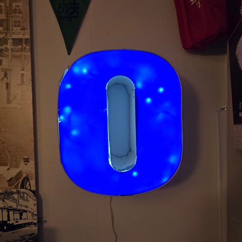 Vanha teollinen valomainoskirjain T, metallirunkoinen ja vihreäksi maalattu. Sisällä loisteputki ja alkuperäiset johdot, mutta valo ei toimi ja vaatii sähkökytkennän/mahdollisen uudelleenrakennuksen. Arviolta 1970-luvulta. Ei varmuutta, onko valaisin enää saatavissa toimivaksi. Sopii kuitenkin hyvin sisustuselementiksi, rekvisiitaksi yms. Kunto käytetty hyvä, ajan patinaa. Koko n.61 x 37 x 16cm (mitat löytyy vielä kuvista)