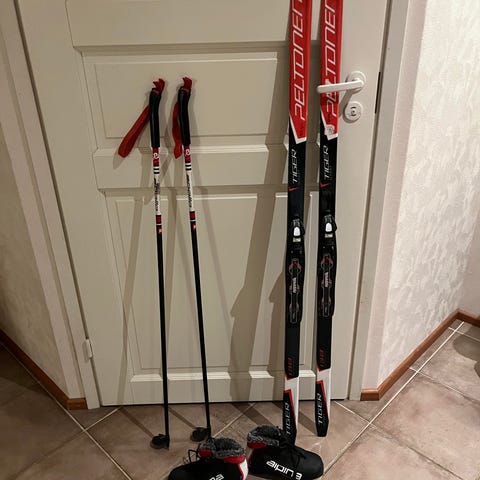 Peltonen lasten maastohiihtosetti sukset, monot, sauvat.