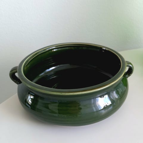 Kaunis keraaminen kaatokulho (japaniksi karakuchi), jossa on valkoista ja harmaata lasitetta. Kulhossa on nokka, ja sitä käytetään kastikkeiden ja muiden nesteiden sekoittamiseen tai tarjoiluun.