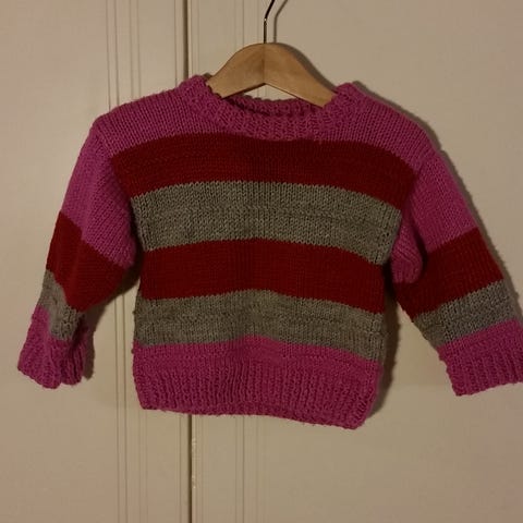 Lämmin vaalaenpunainen villapusero, koko 92 cm. Villa on 50%