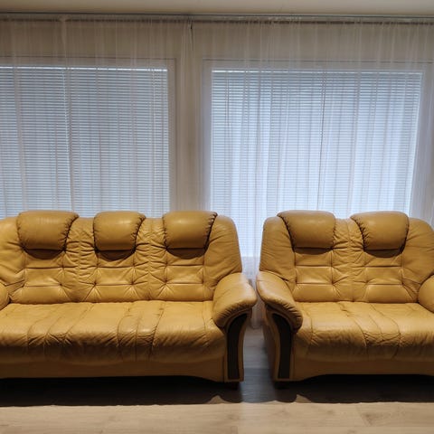 Muhkeat nahkasohvat, 3-istuttavan istuinosaan pinta uusittu
