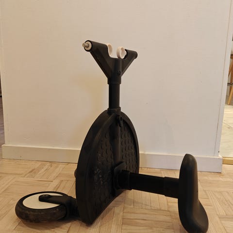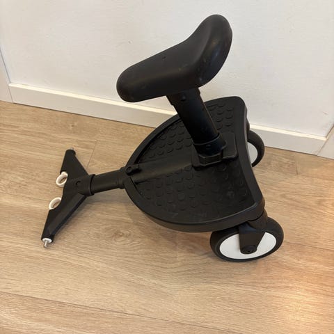 Vähän käytetty, hyväkuntoinen Babyzen YOYO -rattaiden seisomalauta istuimella. Tuote kiinnitetään rattaiden runkoon, jolloin isompi lapsi voi joko seistä laudan päällä tai istua irrotettavalla satulamaisella istuimella. Laudassa on alla pyörät. Väri musta. Yhteensopiva Babyzen-rattaiden kanssa valmistajan ohjeiden mukaan.