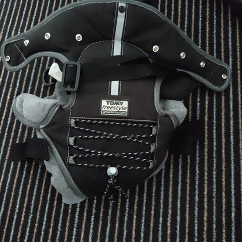 Siistikuntoinen kantoreppu, voi kantaa kasvot molempiin suuntiin.
