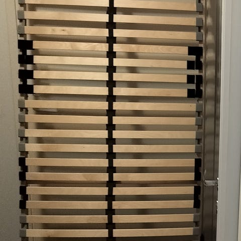 Hakusessa 90 cm leveään sänkyyn sälepohja, saa olla leveämpikin ja kunnostuskelpoinen.