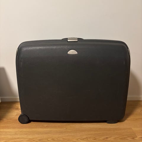 Siisti Samsonite-matkalaukku. Laulussa on kaksi pyörää, vetokahva sekä kantokahva päällä. Etupuolella on vetoketjullinen ulkotasku. Laukussa on numerolukko.