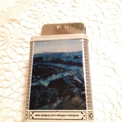 Vintage, Georgialainen tee metallirasia venäjänkielisellä tekstillä