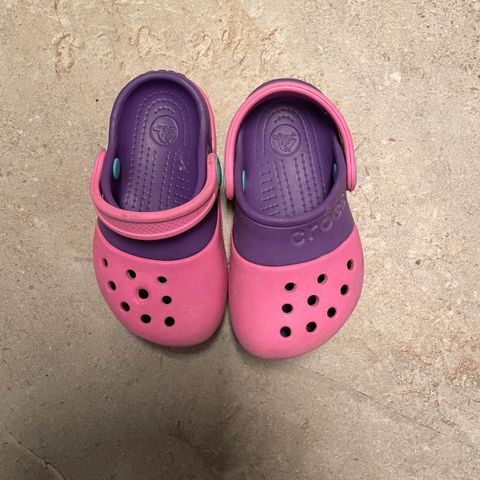 Crocs lasten sandaalit tytöille, koko 22. Sandaaleissa on violetti ja pinkki väriyhdistelmä sekä kuviollinen sisäpohja. Materiaali on helppohoitoista ja kevyttä synteettistä materiaalia. Mallissa on suljettu kärki ja säädettävä remmi nilkan ympärillä, mikä auttaa sandaalin pysymistä jalassa. Soveltuvat arkeen ja kesäkäyttöön lapselle, joka käyttää kengän kokoa 22.
